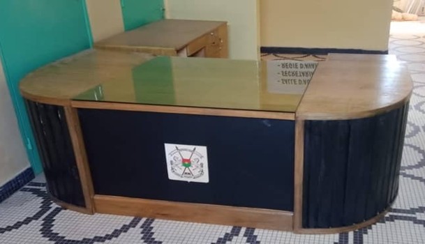 Joues, dessous et fond ; épaisseur 18mm. Façade d’épaisseur 18 mm top finition impeccable assorti au bureau.. Caisson sur roulette à 3 tiroirs dont 1 pour les dossiers suspendus se fermant à clé.
